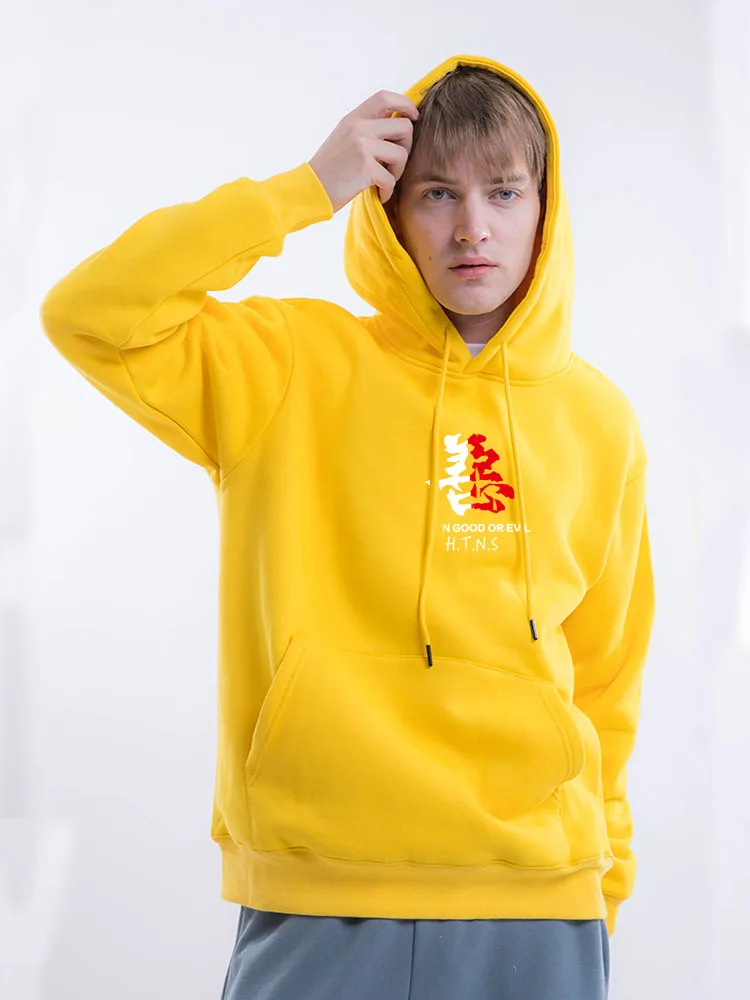 Men's autumn Winter Hoodies Men Spring Anime Graffiti Sweatshirt Male Hip Hop Harajuku Japanese Streetwear Loose Yellow Hoodie