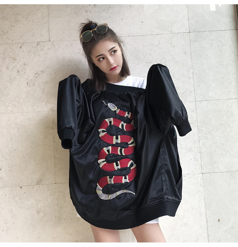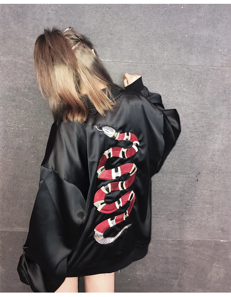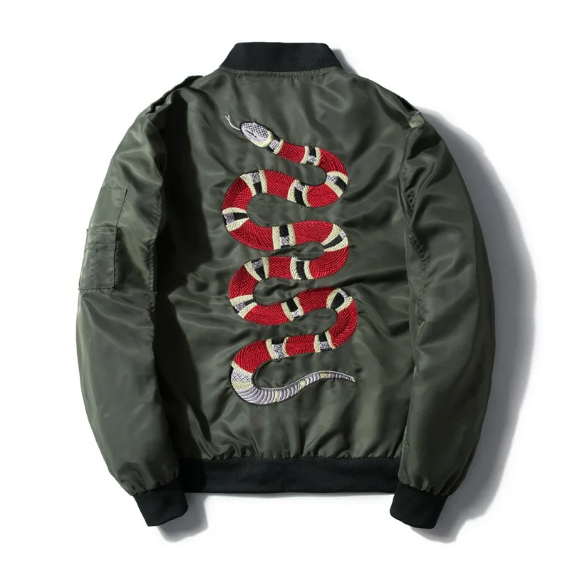 | MANNAN Autumn 2018 Jacket Snake Embroidery Jacket Thin Men Hip Hop high street Streetwear Embroidered couples baseball Coat |