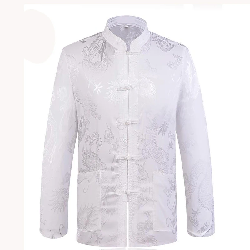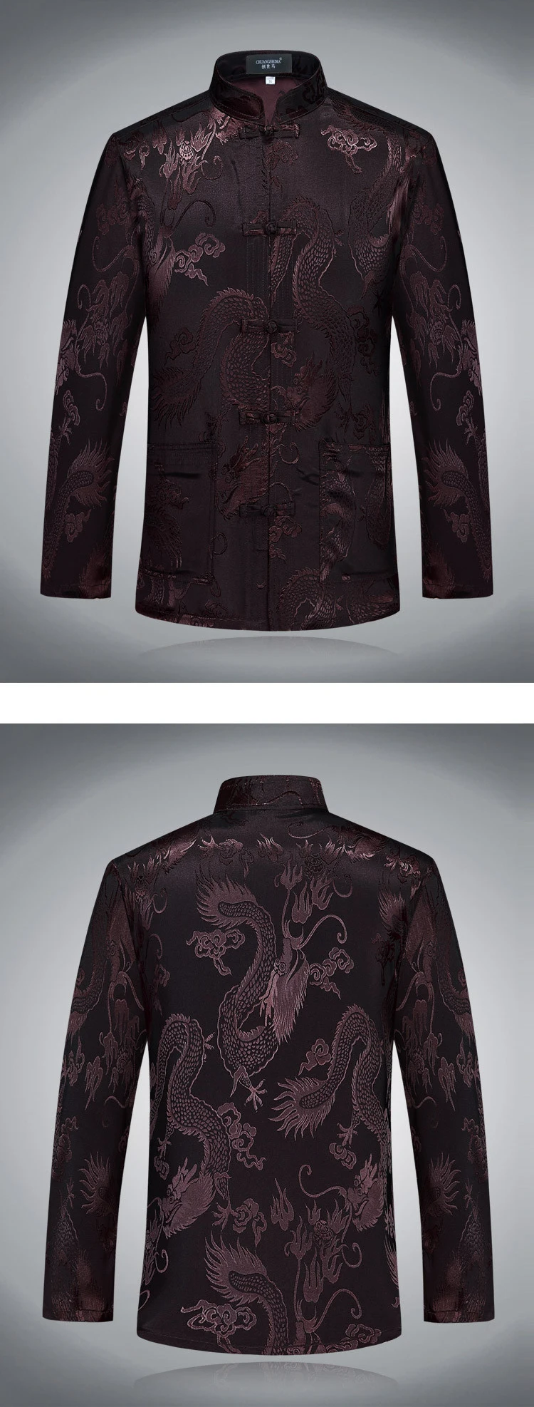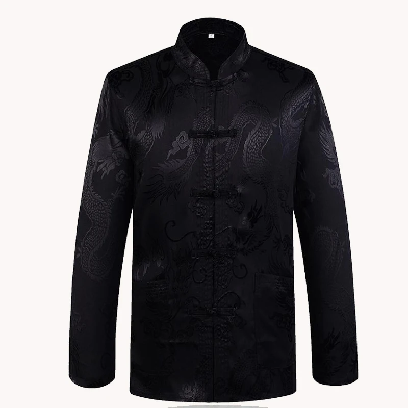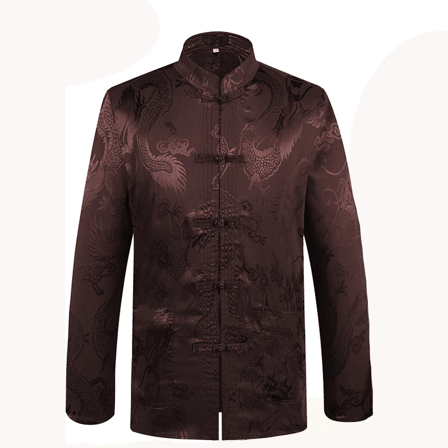 New Arrival Chinese Traditional Men's Satin Mandarin Collar Dragon Silk Tang Suit Clothing Kung Fu Jacket Coat Casual Homewear