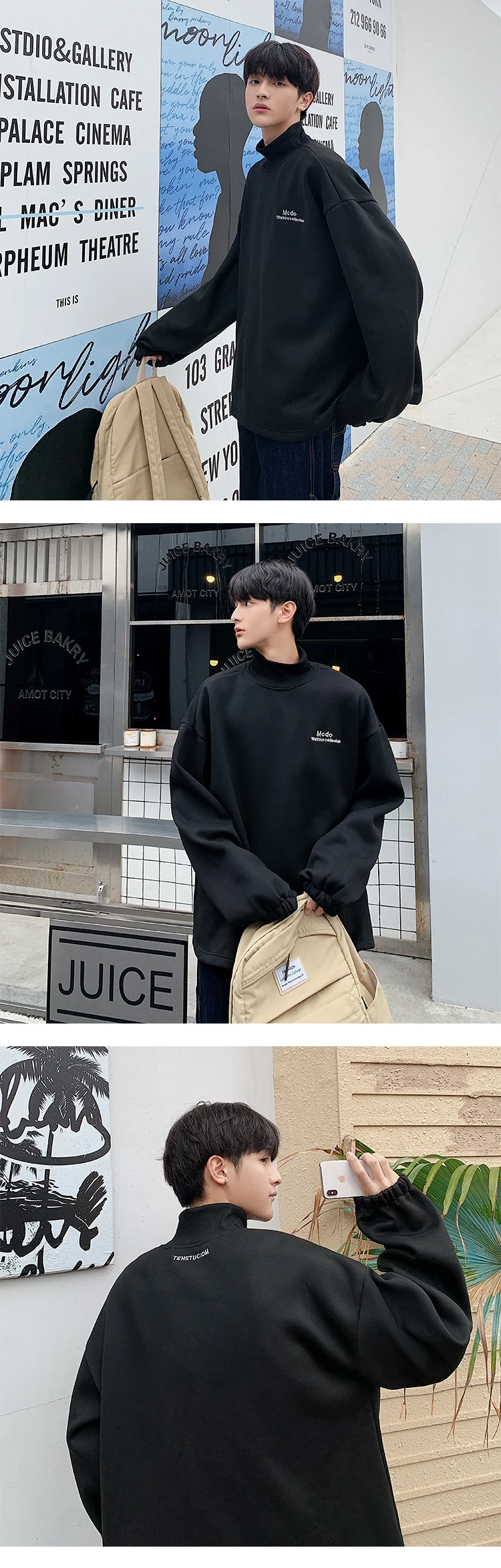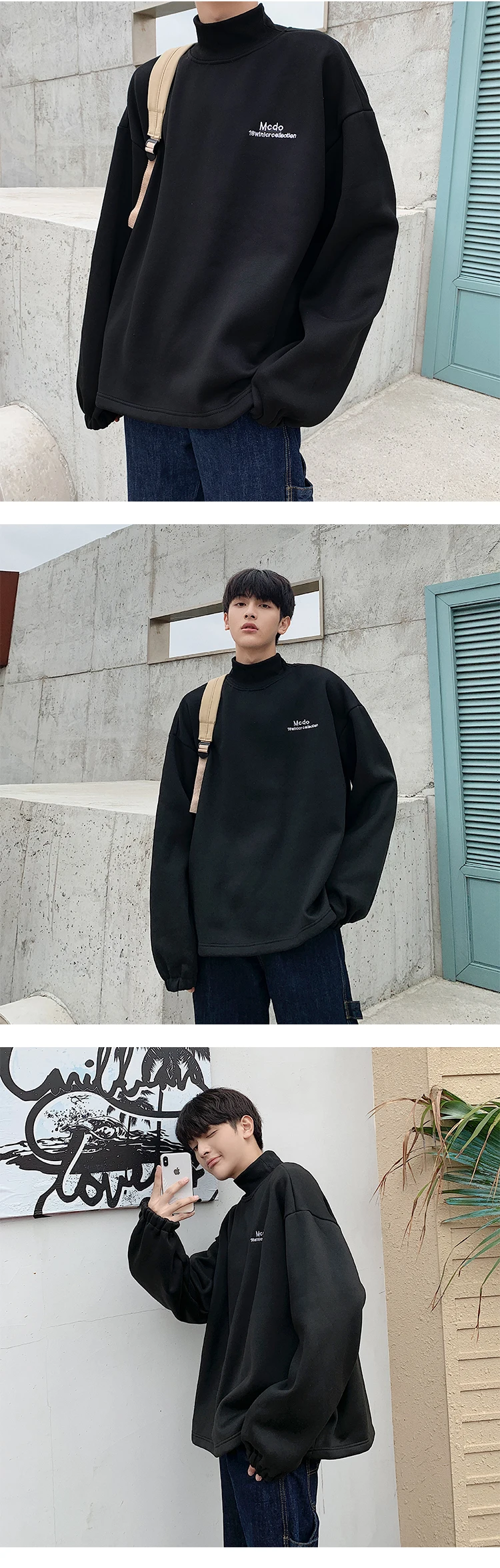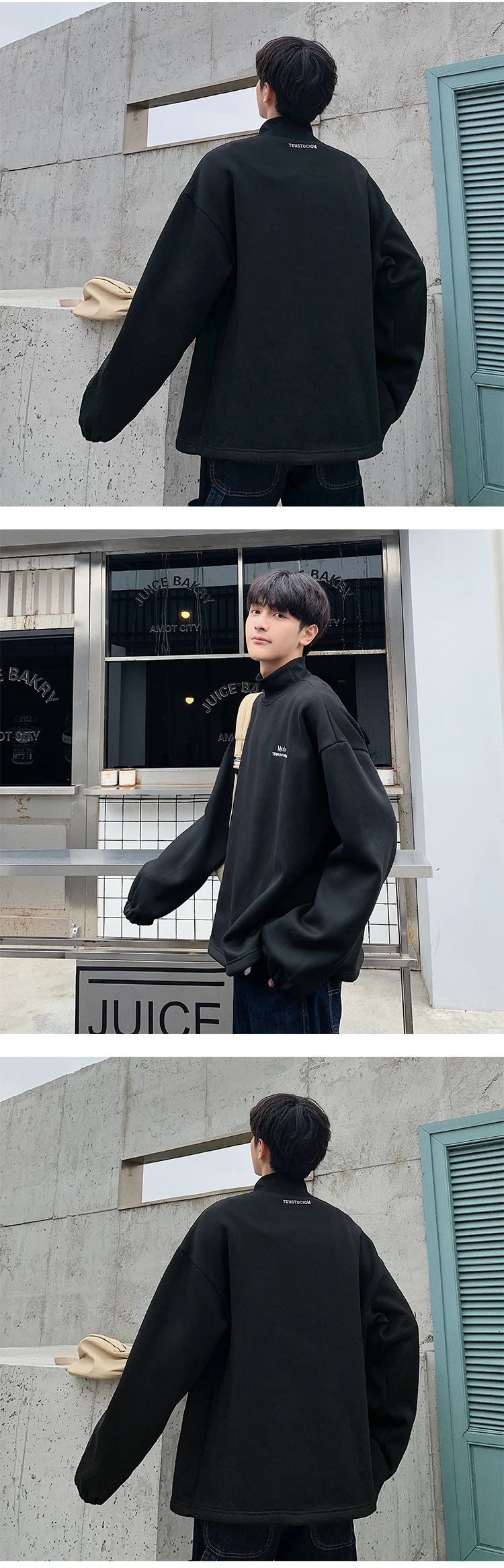 | Black Hoodie Men Plus Size Turtleneck Thicker Letter Winter Clothes Mens Hoodies Pullover Korean Fashion Hip Hop Streetwear Warm |