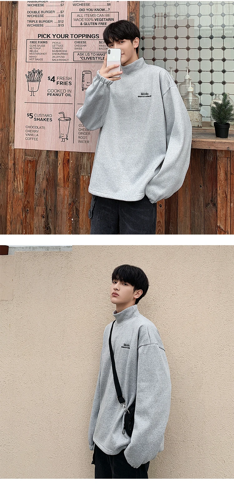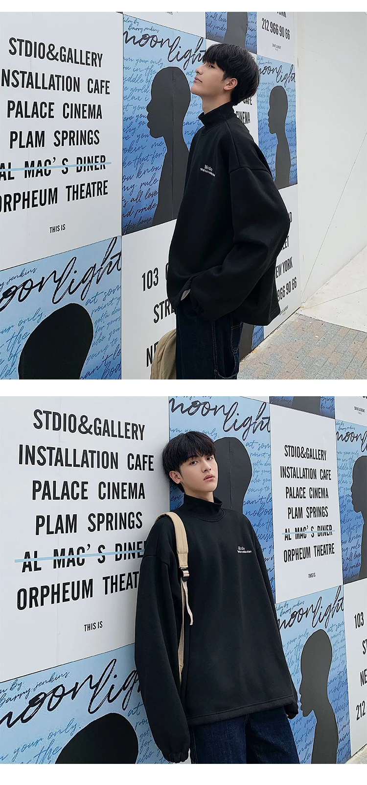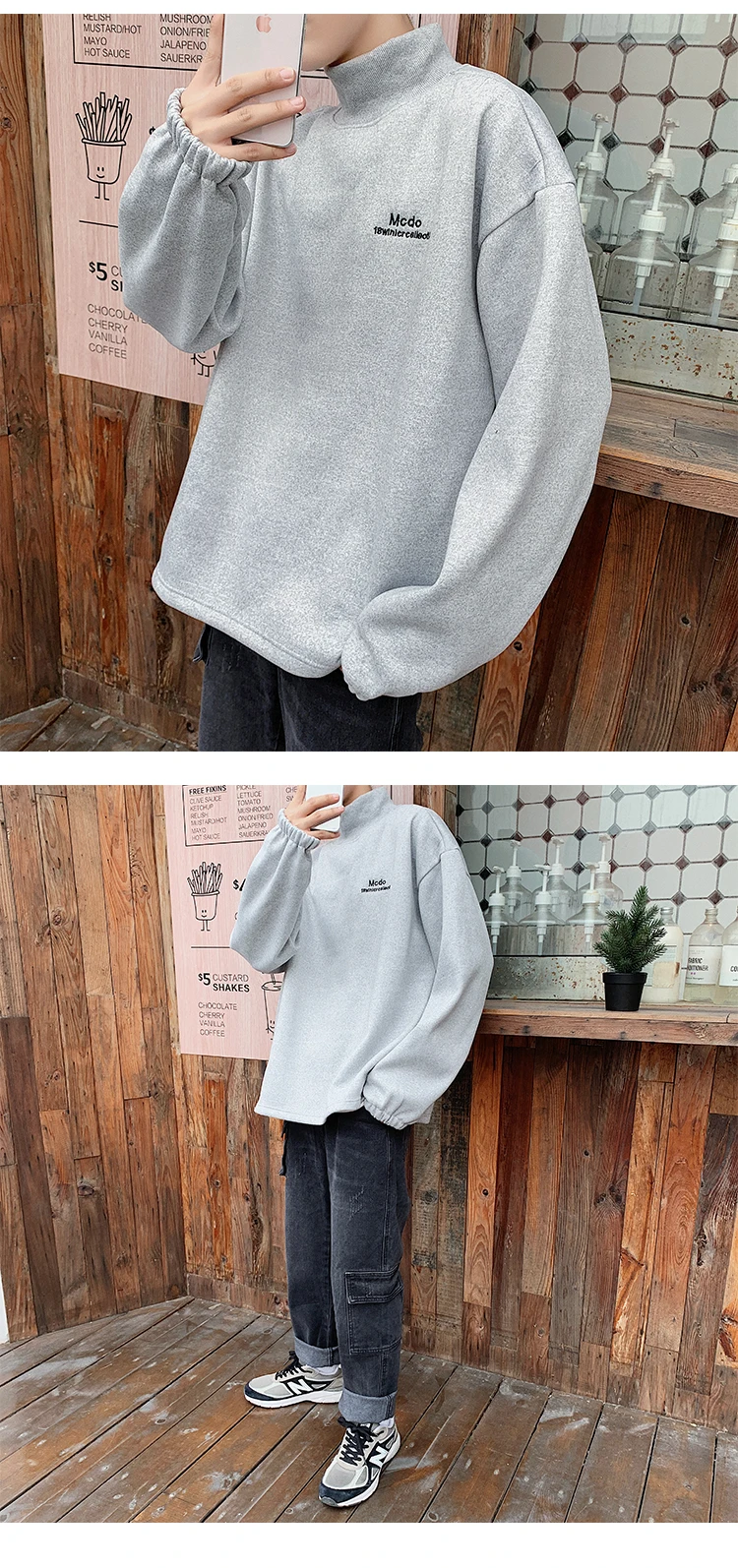 | Black Hoodie Men Plus Size Turtleneck Thicker Letter Winter Clothes Mens Hoodies Pullover Korean Fashion Hip Hop Streetwear Warm |