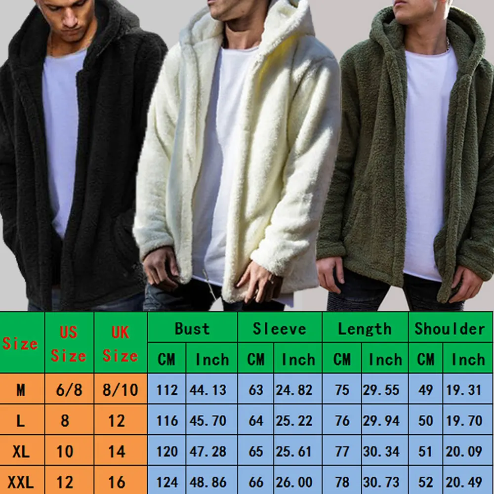 | Drop Shipping Men Winter Warm Teddy Bear Pocket Fluffy Coat Fleece Fur Hooded Jackets Hip Hop Stylish Cool Tops Plus Size M-2XL |