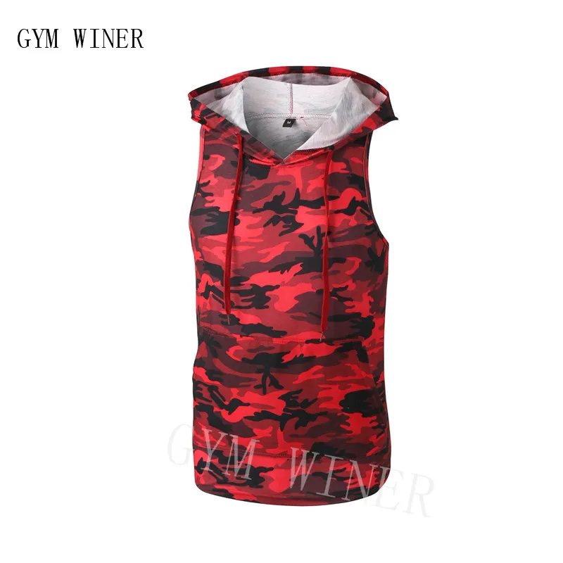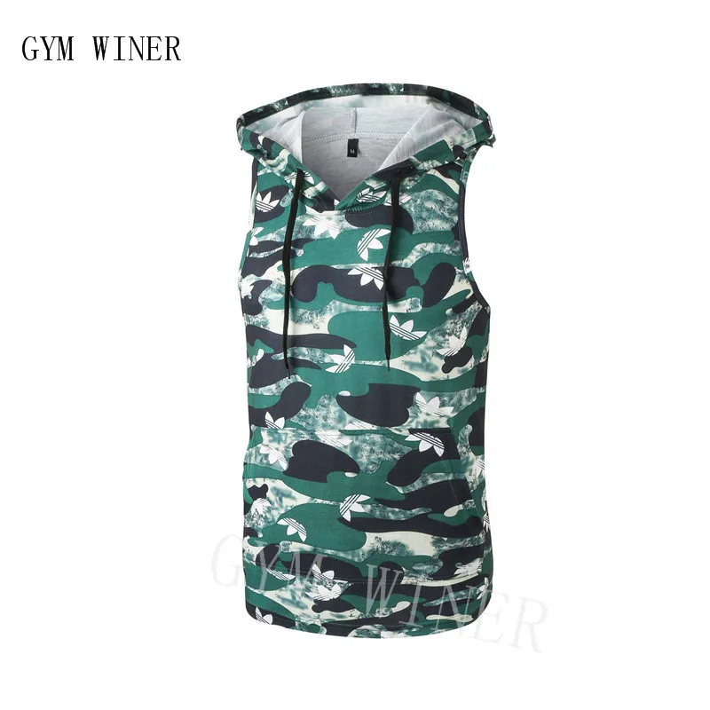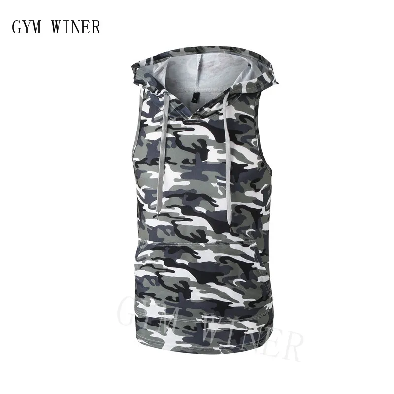 New Men Bodybuilding Tank Tops Gyms Fitness Workout Sleeveless Hoodies Man Casual Camouflage Hooded Vest Male Camo Clothing