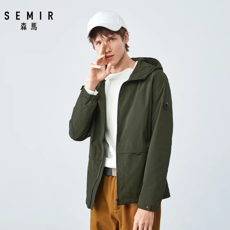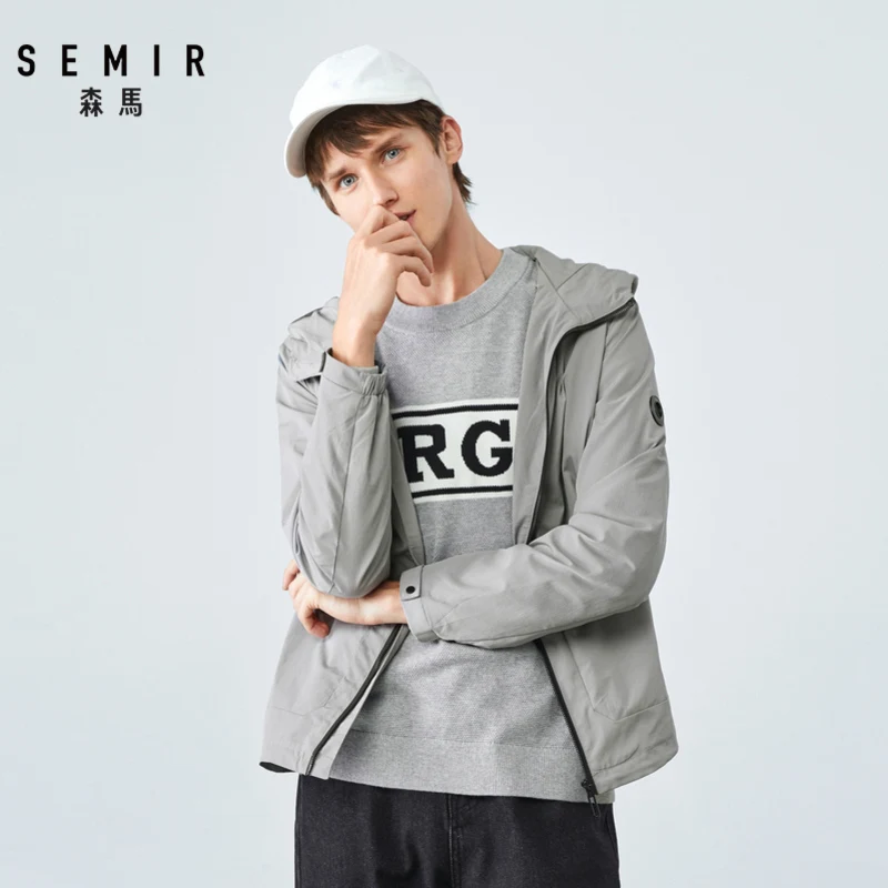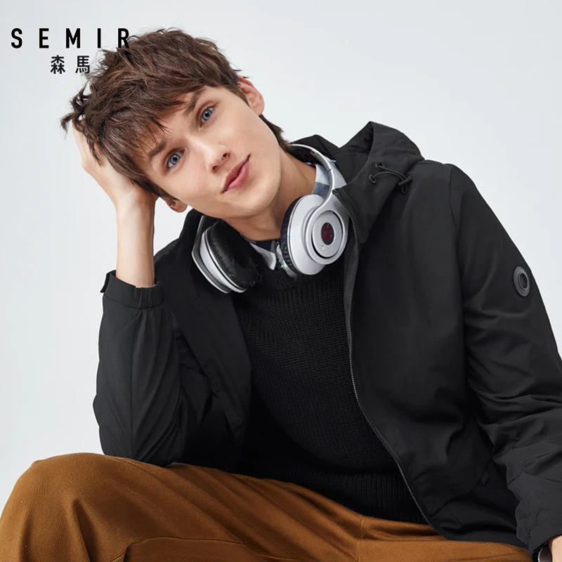 Semir Men jacket trend keep warm hooded black shirt man casual handsome ins tide brand clothes green black gray