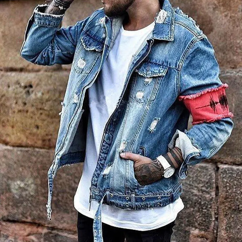 | Men's Jean Jackets Streetwear Hip Hop Bomber Jacket Denim Jacket Men Brand Ripped Denim Jackets Casual Fashion Coat |