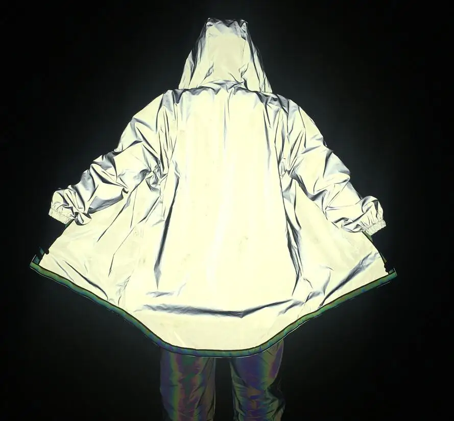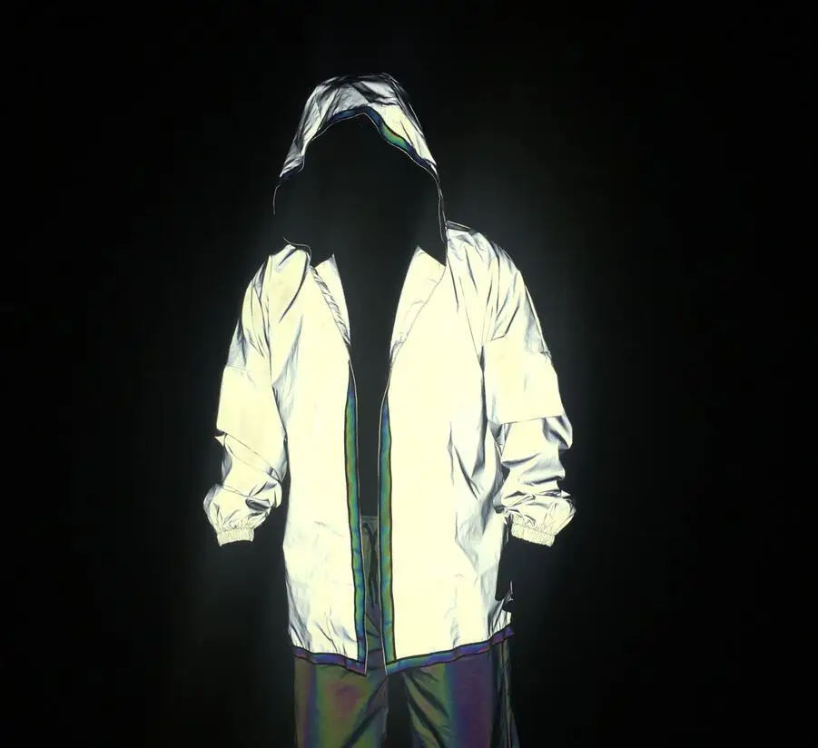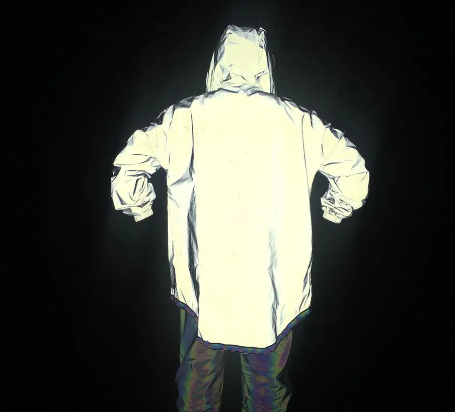 | Reflective Bomber Jacket Men Brand New Hip Hop Dance Fluorescent Trench Coat Punk Harajuku Windbreaker Cloak Jackets and Coats |