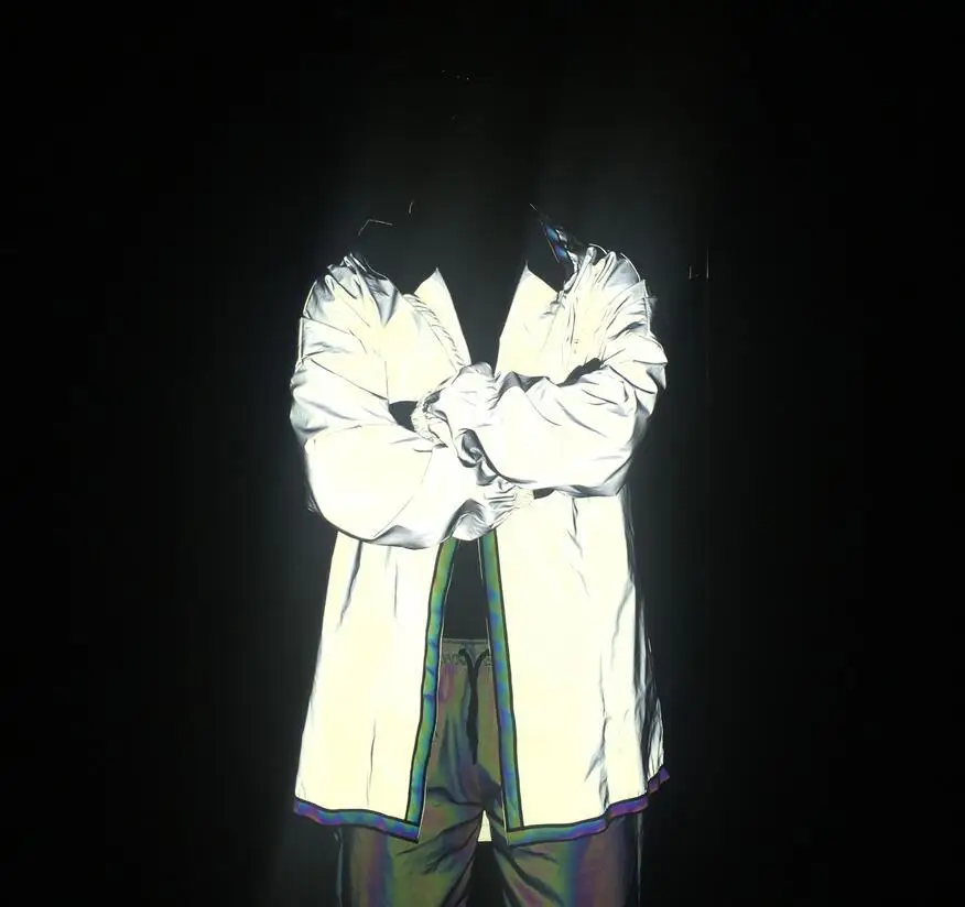 1. Item Type: Reflective Jacket Men/Reflective Windbreaker2. Material: Polyester,Cotton3. Style: Fashion/Streetwear/Hip Hop/Casual4. Asian size, choose 1-2 size bigger than the size you wear, better to check the size chart5. New Arrival Fashion Night Run Jacket/Show/Dance Wear6. Accept Dropshipping, the package does not include any price or invoice.