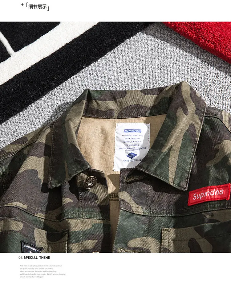 | New 2020 autumn fashion camouflage denim jacket men plus size military army men jacket jeans men jacket |