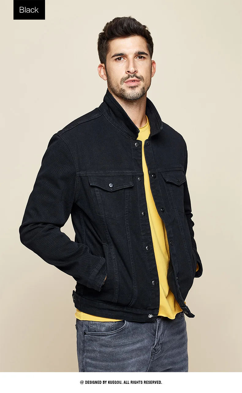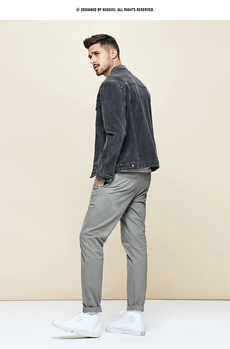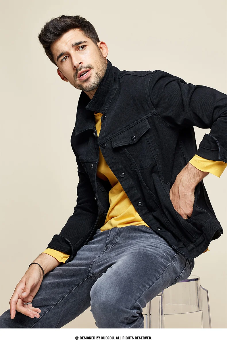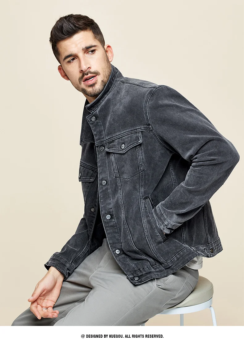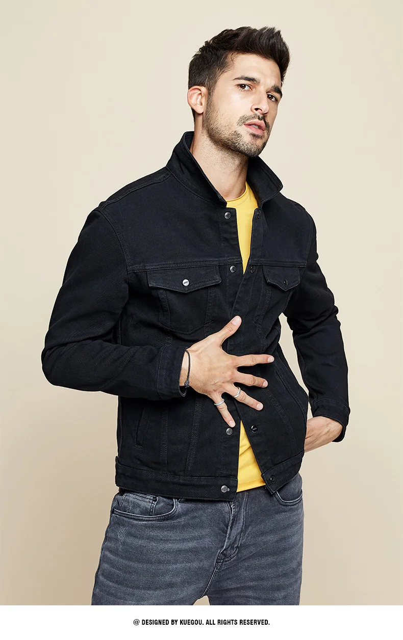 KUEGOU Men's denim jacket South Korean style fashion spring coat Black grey slim cowboy coat lapels top size KW-2988