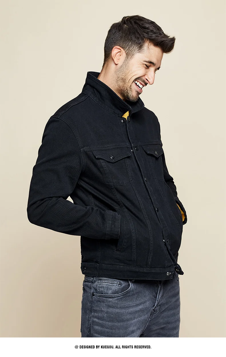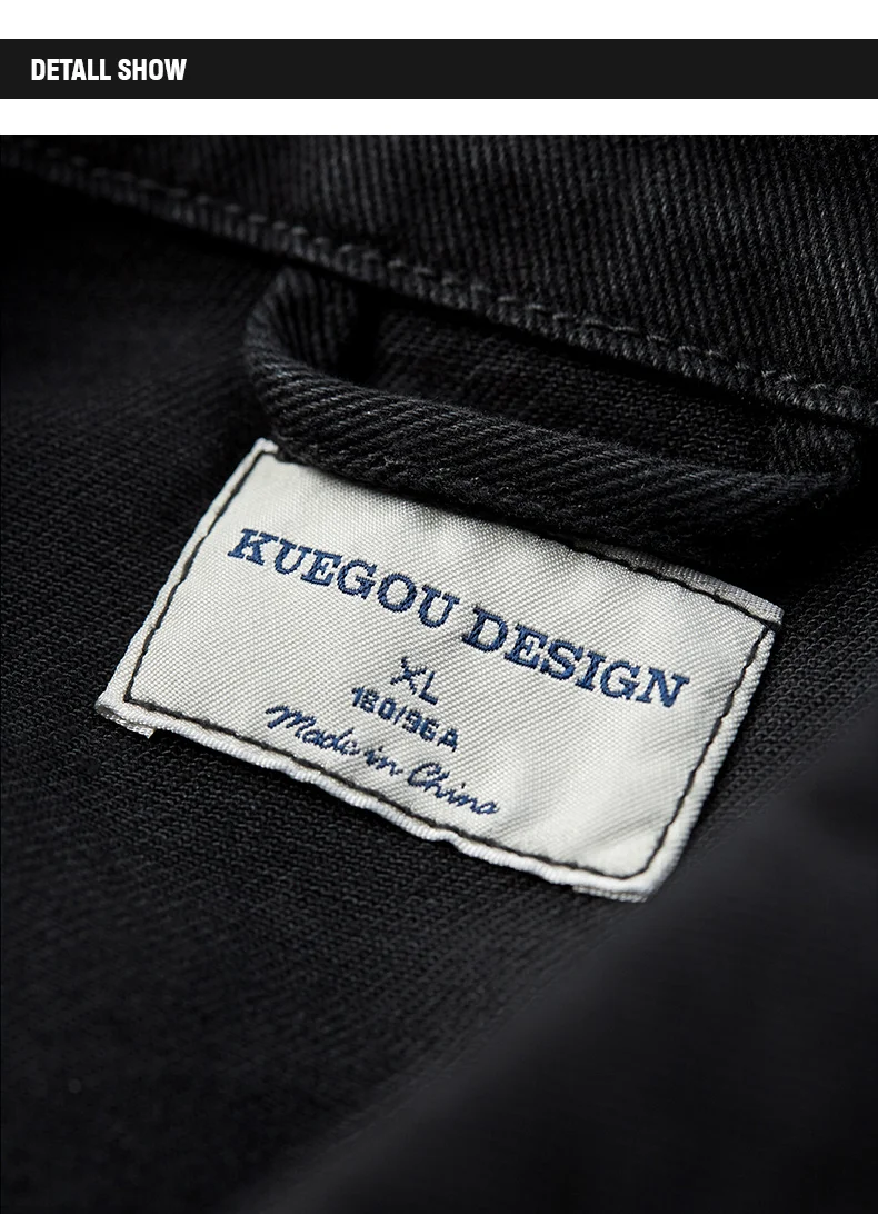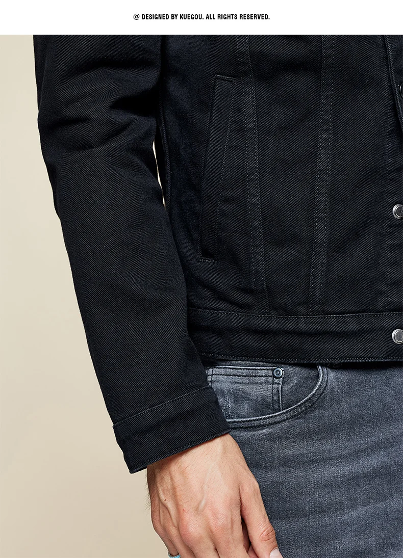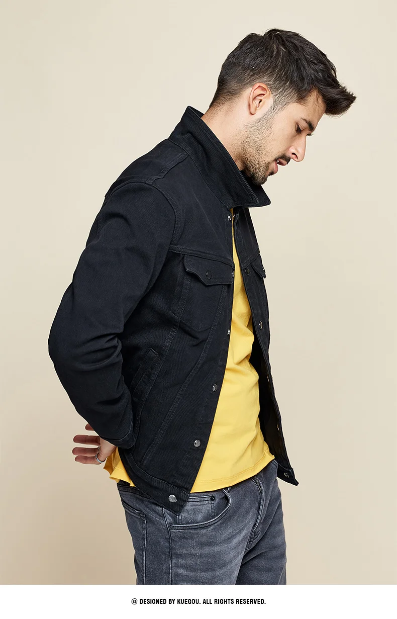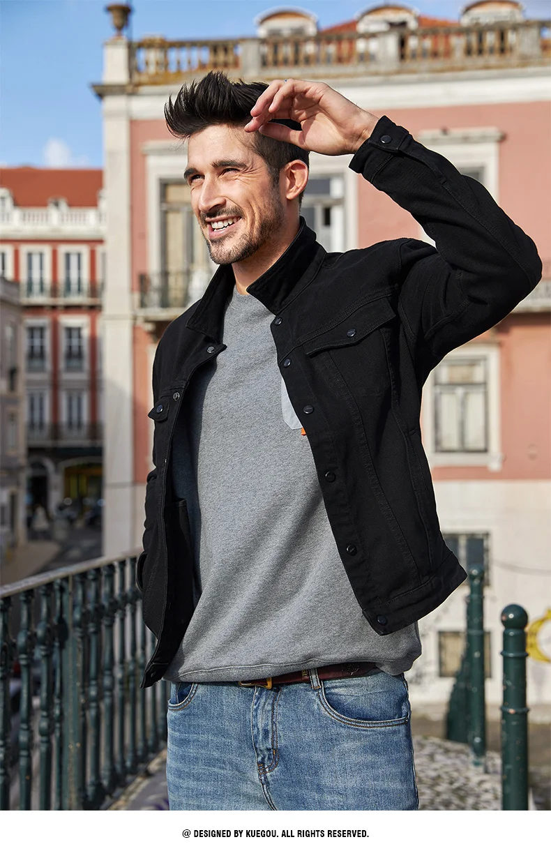 KUEGOU Men's denim jacket South Korean style fashion spring coat Black grey slim cowboy coat lapels top size KW-2988