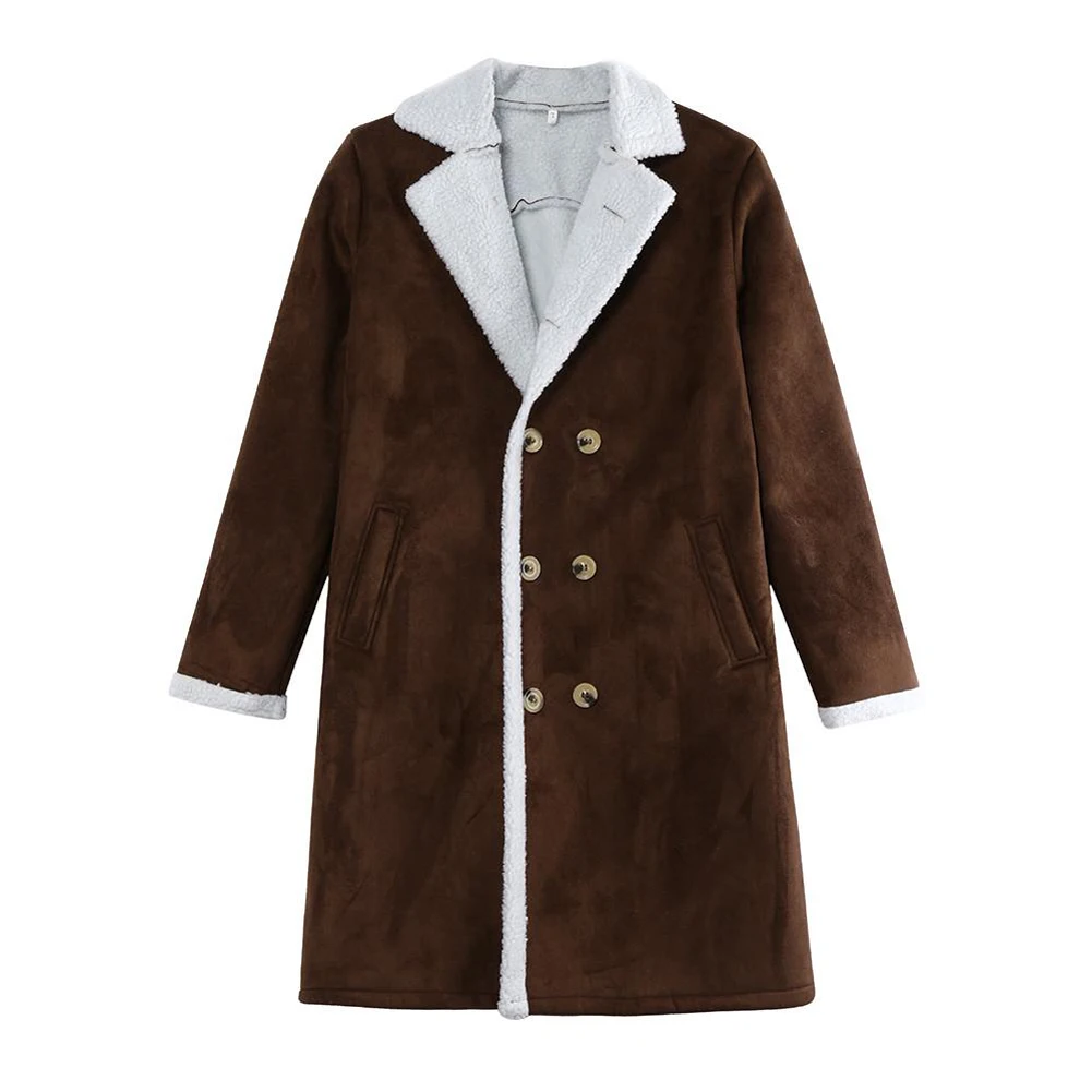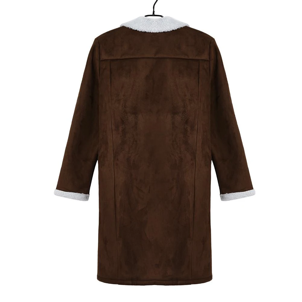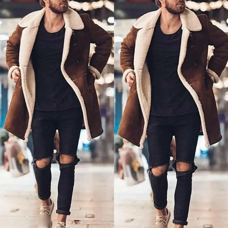 | Men's Fur Fleece Fashion Trench Coat Brown Winter Fashion Overcoat Lapel Warm Fluffy Male Casual Jacket Outerwear |